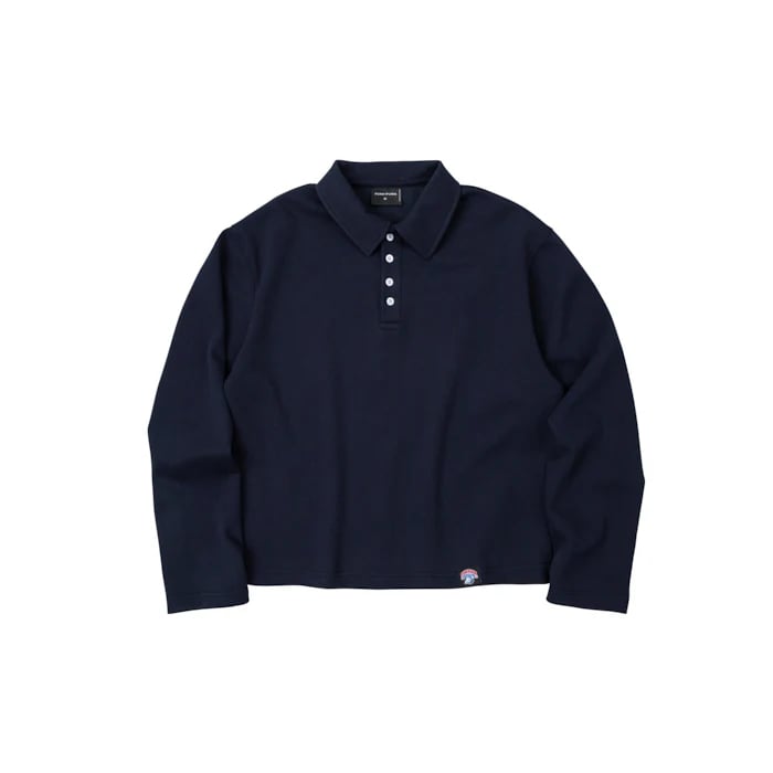Features: Button placket, self-fabric collar, decorative brand tag at hem